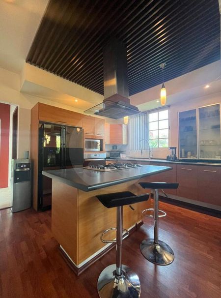 Se vende amplia propiedad en zona privilegiada en fraccionamiento "Puerta del Carmen", con 17 años de antigüedad en excelentes condiciones. Con un total de 5 recamaras, 5 baños completos y 4 cajones de estacionamiento. La superficie total es de 700 m2 y 460 m2 construidos. Cuenta con vigilancia 24 horas, juegos infantiles, lago y casa club para eventos o actividades (mesa de billar, ping pong y mesa de futbolito). en Edo. de México. Ideal para quienes buscan un hogar espacioso, luminoso y cómodo en un entorno seguro y tranquilo. Ideal si trabajas en Santa Fe