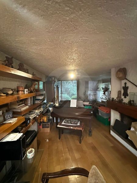 Fraccionamiento cerrado con. vigilancia, con salida directa a Periférico. Con gran diseño. Para actualizar acabados. Sala, comedor, estudio, medio baño de vistas, cava, cocina equipada, tres recámaras, cada una con vestidor y baño, sala de TV, terraza y gran jardín posterior con estudio independiente con medio baño. 3 estacionamientos cubiertos. Calle empedrada con gran frente para estacionar coches adicionales.