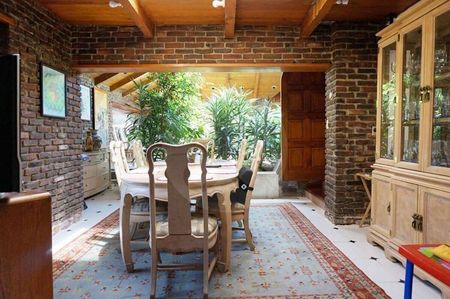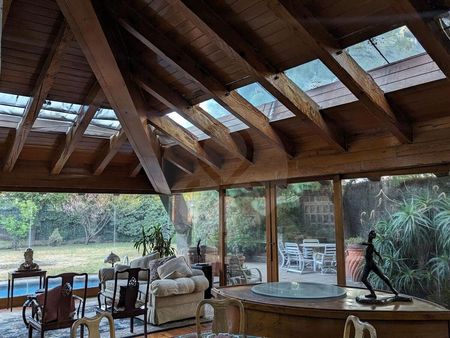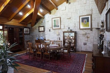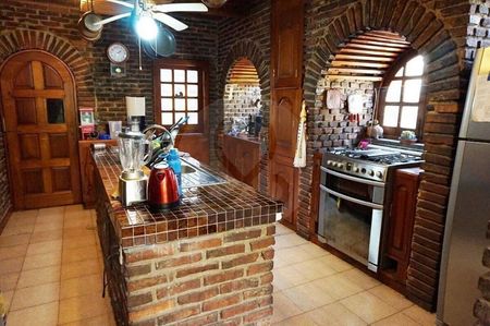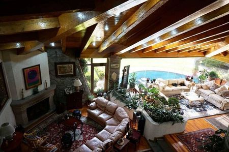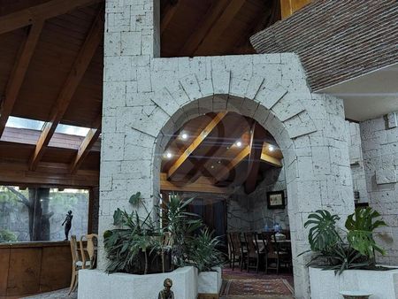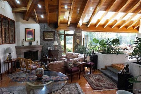 Toda la casa tiene hermosos techos de madera inclinados, muros de cantera y tabique recocho, pisos de madera y una chimenea en una de las dos salas.Salón de usos multiples, garage externo para cuatro o cinco vehículos, cuarto de servicio con baño, área de lavado, 2 cisternas e hidroneumático, alberca que no está en uso pero se puede rehabilitar con caldera y amplio jardín con árboles frutales.