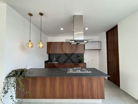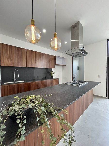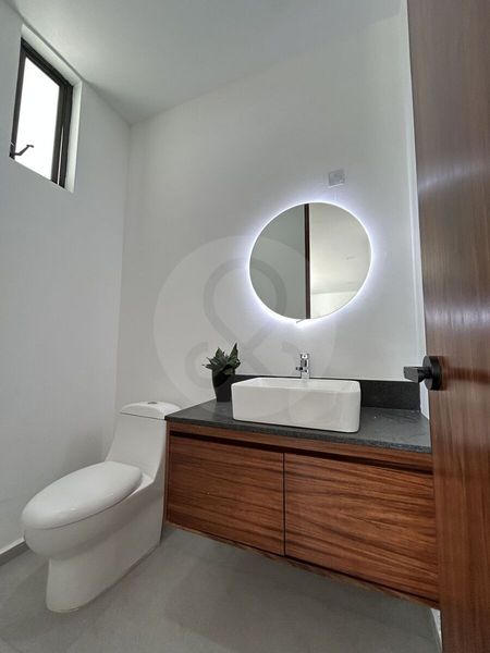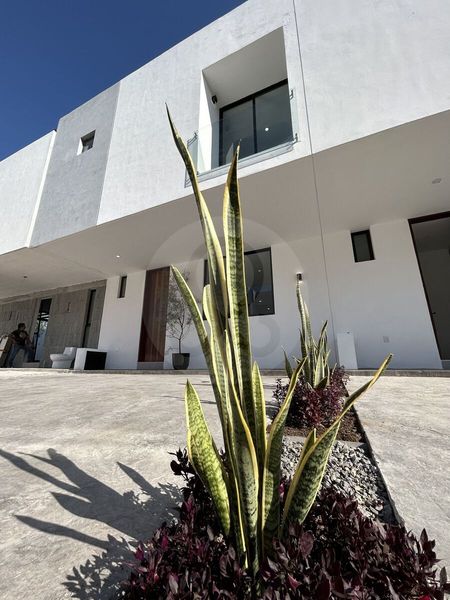 Cochera para 2 autos, Sala, comedor, medio baño, cocina integral, jardín, cuarto de lavado.