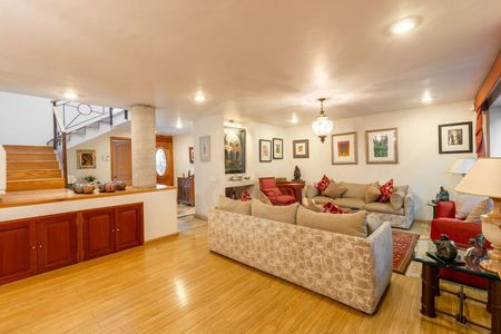 Muy buena casa en condominio de solo 5 casas, muy cerca de la Supervía y de Periférico. Muy buen estado de conservación, Consta de dos niveles, en planta baja, recibidor, muy amplia sala y comedor que cuentan con un ventanal con vista verde/ jardineras, cocina con cubierta de granito, antecomedor o estudio, baño de visitas. En primer nivel, 3 recámaras todas con vestidor y baño. La recámara principal es muy amplia cabe una salita dentro. Cuarto de televisión en medio de las recámaras. Cuarto de servicio con baño completo, amplia área de lavado, patio de tendido. 4 lugares de estacionamiento, Vigilancia de 7 am a 5 pm. de lunes a viernes, sábado de 7 a 1.00.