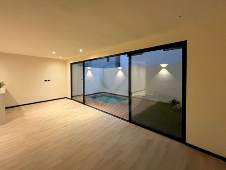 Planta Baja, Cochera con pérgola para dos autos, recámara con closet, Baño completo con regadera de cristal templado