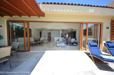 Villa en Punta Esmeralda, La Cruz de Huanacaxtle. Esta encantadora propiedad de 2 niveles cuenta con 3 recamaras y 3 baños, así como amplios y luminosos espacios perfectos para una vida tranquila y feliz. Su terraza ofrece una impresionante vista al océano y cuenta con una alberca privada para disfrutar al máximo cada momento frente al mar. Con una superficie total de 407m2, esta villa destaca por tener el mejor precio por metro cuadrado de todo Punta Esmeralda. Construida en 2006 en excelente estado, esta propiedad es ideal para quienes buscan un lugar cómodo y elegante para vivir. Aprovecha esta oportunidad de adquirir una casa en un desarrollo exclusivo como Punta Esmeralda.
