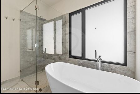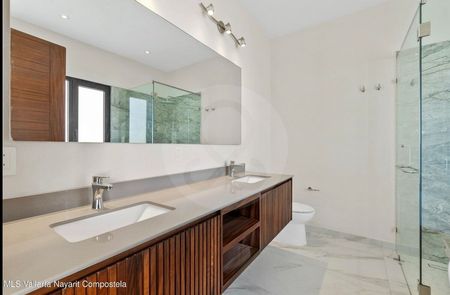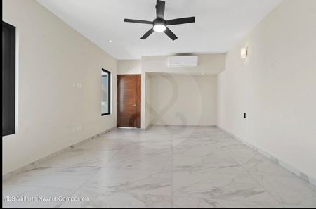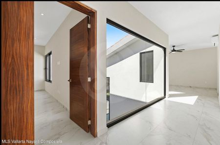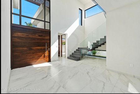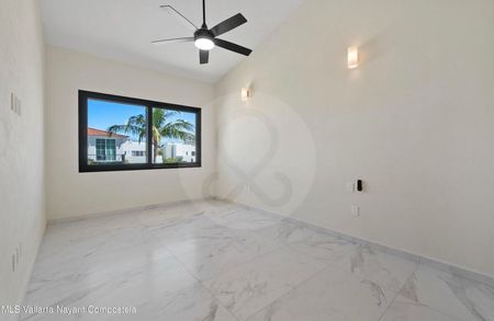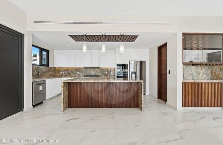Elegante villa nueva de 2 pisos en el desarrollo LOS TIGRES. Esta casa cuenta con 4 recamaras, 6 baños completos y 2 medios baños, con una superficie total de 503 m2. Construida en el año 2024, se encuentra en excelentes condiciones y tiene un diseño meticuloso con acabados de alta calidad en madera de Parrota. En la planta baja, encontrarás una amplia cocina que se integra perfectamente con la sala y el comedor de doble altura, con vistas al jardín, la terraza y la piscina. Además, hay un segundo dormitorio principal, un estudio versátil, una habitación de servicio y un medio baño. En la planta alta, se encuentran el lujoso dormitorio principal y dos dormitorios adicionales, cada uno con su propio baño en suite. La villa ofrece privacidad y abundante luz natural, creando un ambiente espacioso y aireado. En el desarrollo LOS TIGRES, disfrutarás de amenidades de clase mundial, como un club deportivo, piscina, canchas de tenis, gimnasio, restaurantes y parques. La ubicación es privilegiada, cerca de clubes de playa, centros comerciales, restaurantes, campos de golf y el Aeropuerto Internacional de Vallarta. Una oportunidad única para vivir un estilo de vida exclusivo en Nuevo Vallarta.