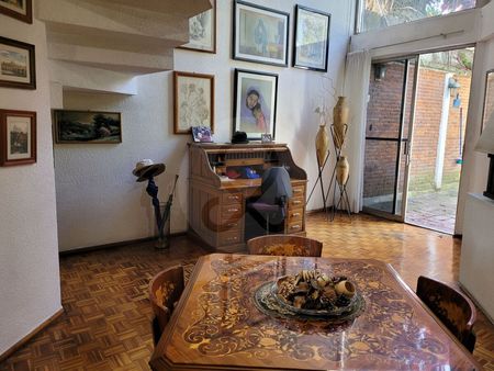 Construida en 1984, esta casa de dos plantas cuenta con un total de 3 recamaras, 3 baños completos con vestidor y 1 medio baño para visitas en planta baja. Con un total de 490 m² de terreno, la casa ofrece 370 m² de construcción techada y 250 m² de espacio sin techo. La disposición de la propiedad es frontal y su orientación es hacia el este. Entre las comodidades que ofrece se encuentran sala - comedor, desayunador, bodega, closets, cocina integral, cuarto de lavado, cuarto de Tv, despensa, jardín privado con terraza techada, patio de servicio, cisterna, cuarto de servicio y facilidades para estacionarse. Además, la calle cuenta con caseta de seguridad y seguridad las 24 horas. Su precio de venta es de 10,990,000 Mxn.