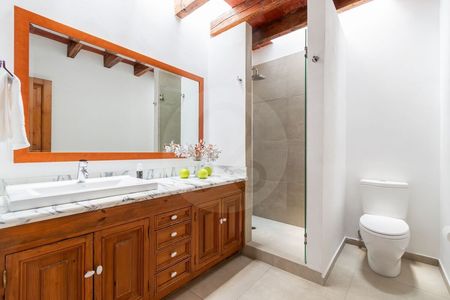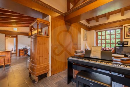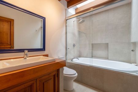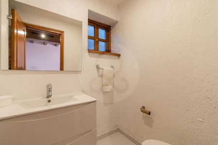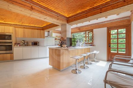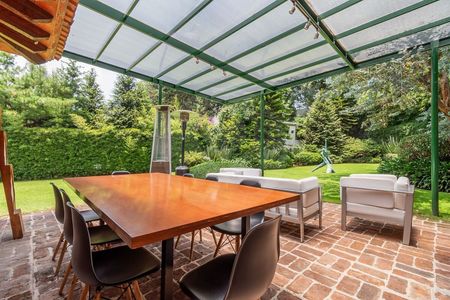 Se vende una propiedad en el desarrollo Rancho San Francisco, ubicado en la Ciudad de México, en la delegación Álvaro Obregón. Construida en el año 2004, esta casa de dos plantas cuenta con una superficie techada de 520 metros cuadrados y un terreno total de 1380 metros cuadrados. Dispone de 4 suites, 4 baños completos, 1 medio baño y espacio para 9 autos en estacionamiento techado. Entre sus servicios, destaca la presencia de una cancha de paddle, una cancha de tenis, cuarto de lavado, cuarto de TV, estudio/oficina, cuarto de servicio y jardín. La ubicación en la tranquila zona de San Bartolo Ameyalco, ofrece una excelente calidad de vida para sus habitantes.
