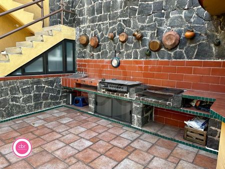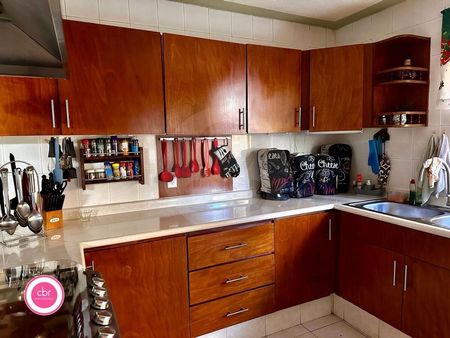 En construcción aparte, cuarto de lavado y de servicio con baño. Sobre cuarto de lavado y servicio se construyó un segundo nivel que un tiempo se usó como taller de costura. Bodega, patio con asador y baño. Se encuentra a unos minutos de six flags.