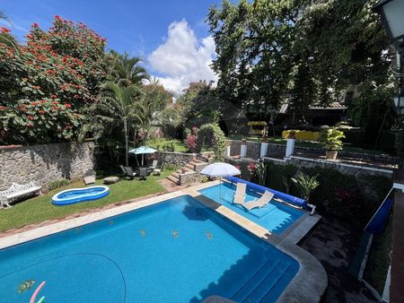 Casa en renta ubicada en la exclusiva zona de San Miguel Acapantzingo, Cuernavaca. Esta propiedad cuenta con estancia, cocina, 4 recamaras cada una con closet, 4 baños completos y 1 medio baño, así como 4 lugares de estacionamiento. Con una superficie total de 1,122 m2 y una superficie techada de 408.8 m2, esta casa ofrece amplios espacios para disfrutar en familia. Entre sus servicios, destacan la alberca, y hermosos jardines que dan opcion a utilizar para diferentes momentos. Tambien cuenta con 2 terrazas cubiertas, una en la parte alta que ofrece una vista espectacular del jardin y la alberca y la otra que da acceso directo al jardin y alberca. Ademas tiene una tercera terraza con asador y una linda fuente para organizar las comidas o asados. Tiene adicionalmente area de servicio y area de lavado. Su ubicación estratégica brinda fácil acceso a diversos puntos de interés en la ciudad. Una excelente opción para quienes buscan comodidad y exclusividad en un entorno tranquilo y seguro. En la renta se incluye la luz.