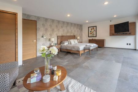 •4 recámaras amplias, con baños completos y vestidor. Cuenta con un medio baño y dos baños más , uno en el Jardín y otro en el salón de eventos. Cuenta con una oficina y dos bodegas.