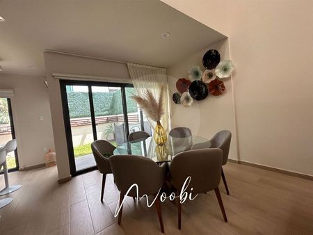 En primer piso encontrarás un acogedor recibidor, sala , comedor y la cocina totalmente equipada que se abre a un encantador jardín, proporcionando un espacio perfecto para disfrutar del aire fresco y la naturaleza mientras cocinas o te relajas al aire libre.