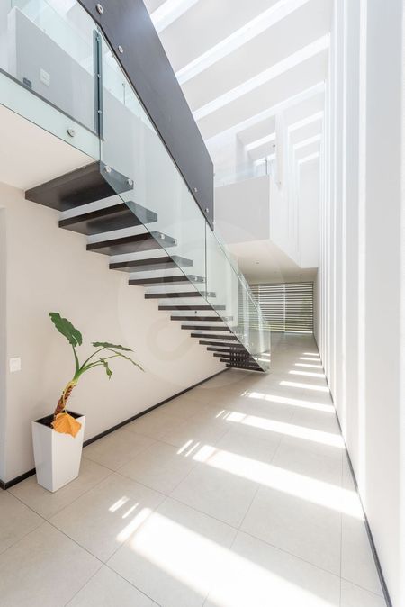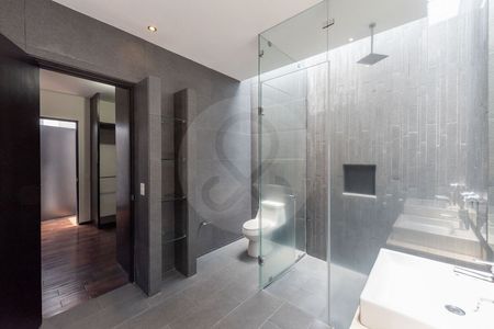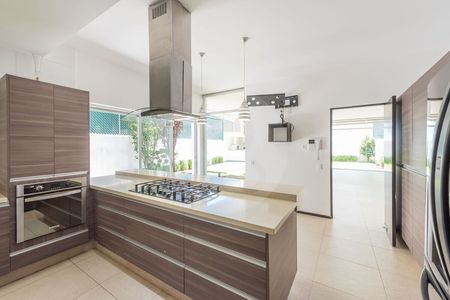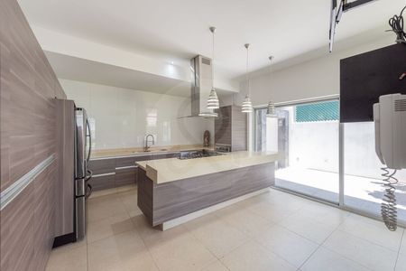 La planta baja te recibe con sala y comedor integrados, cocina equipada con cubiertas de granito, estudio con salida a terraza y jardín que cuenta con una palapa equipada con horno para pizzas y asadores que combinan estilos argentino y brasileño. También se encuentran espacios de servicio que incluyen cuarto de lavado, cuarto de servicio con baño completo, dos bodegas y una cochera cubierta para tres autos.