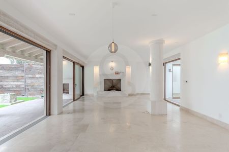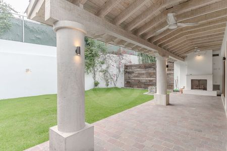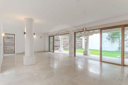 Con 370 mts2 de terreno y 550 mts2 de construcción la amplitud de alturas en todos los niveles de la casa le permite dar versatilidad a la propiedad, en P.B. se cuenta con una triple altura en el área del recibidor principal acceso a la casa, en esa misma planta se cuenta con un espacio que se puede utilizar como estudio u oficina privada, de igual forma como una biblioteca, gracias a la vista a través de ventanales de piso a techo que conectan un patio interno y fuente, en este mismo piso al lado del elevador, también, se encuentra el medio baño de servicio y un closets para las visitas. El espacio de sala/comedor es muy amplio y se integra, a través de ventanales de piso de piso al techo, a la terraza y jardín privado.