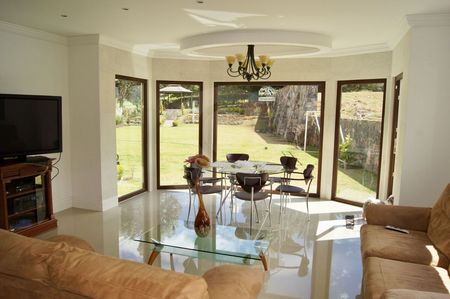 La cocina integral de lujo es un verdadero deleite, con un bello espacio para comer que ofrece vistas al jardín. Desde aquí, puedes acceder a una terraza techada, ideal para disfrutar de momentos al aire libre. La casa presenta una sala con doble altura, un comedor independiente, una acogedora sala de Tv y una biblioteca que invita a la lectura.