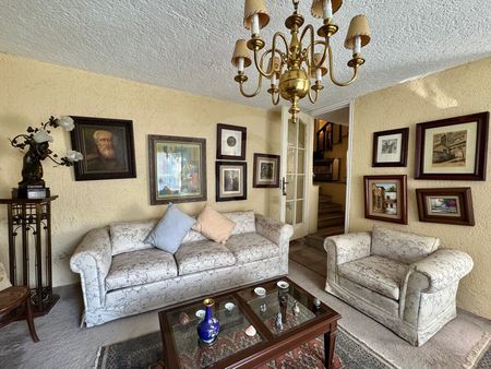 Baño de visitas, sala, y comedor con vista a un hermoso Jardín.