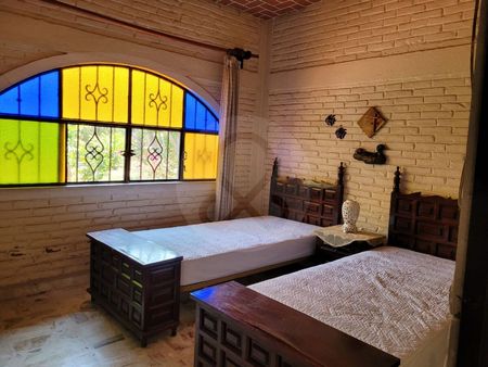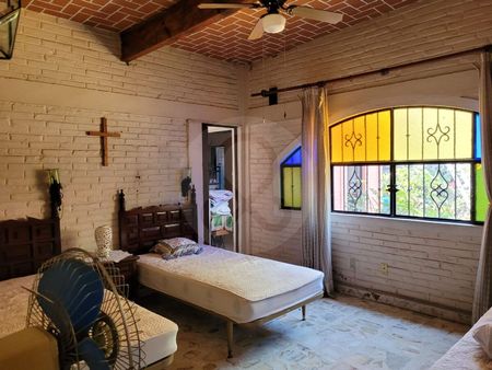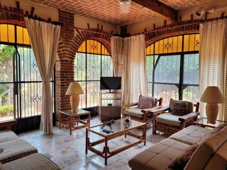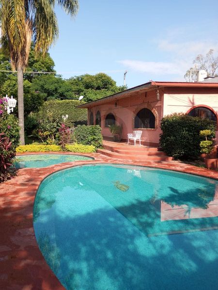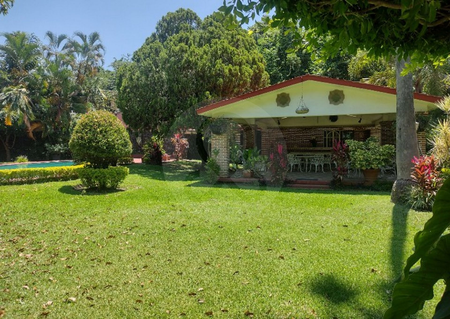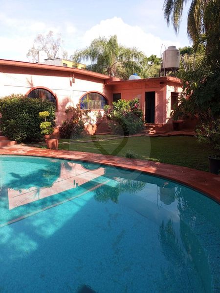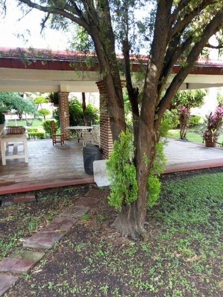 Casa en venta escriturada y documentos en regla, en un terreno total de 3,231m2 y 519m2 de construcción. Hermoso gran jardín con árboles, flores, palapa de buen tamaño con cocineta; también cuenta con alberca y cancha de squash y un bungalow de 114m2. Casa en una sola planta con sala, comedor y una cocina estilo rústico. 4 recámaras, 3 baños, 2 bodegas, cuarto de lavado, 2 cisternas, estacionamiento para 4 autos con opción a muchos más en la parte posterior.
