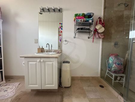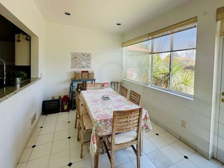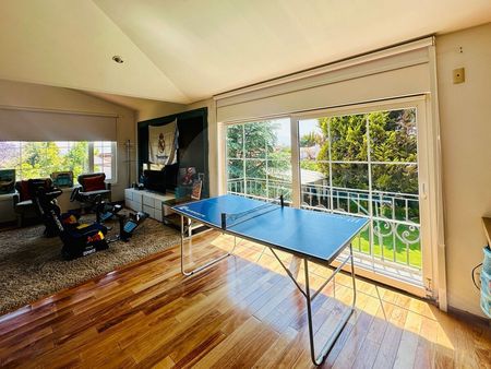 Cuenta con sala con doble altura y chimenea, comedor, sala de Tv en planta baja, cocina integral con despensa y desayunador independiente, oficina, amplio jardín y garage para 4 autos.