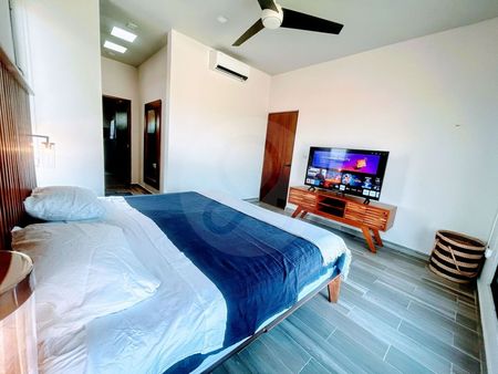 Las otras dos recámaras tienen escritorios flotantes y baño con vidrio templado y espejos flotantes.