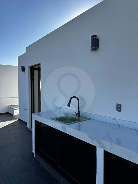 Casa en venta ubicada en Nuevo México, Zapopan. Con una superficie de 180 m² y una construcción de 211 m², esta propiedad cuenta con 3 recámaras, 4 baños completos, y espacio para 2 autos en la cochera. En la planta baja, se encuentra la sala con doble altura, comedor, cocina con isla y cubierta de granito, recibidor/estar, cuarto de lavado y jardín. En el segundo nivel, la recámara principal incluye vestidor y baño con vista al campo de golf, junto con 2 recámaras adicionales con closet y baño compartido, y un estar de TV. En el tercer nivel, se encuentra una terraza con vista al campo de golf y un medio baño. La propiedad se encuentra en excelentes condiciones y fue construida en el año 2025. No pierdas la oportunidad de adquirir esta casa en Valle Imperial.