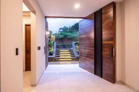 Esta propiedad en venta se encuentra en un fraccionamiento seguro de Rancho San Juan, en Zona Esmeralda. Con una superficie total de 803 m², la construcción de 720 m² ofrece espacios de gran amplitud y materiales de primera calidad. Cuenta con 4 recamaras, 4 baños completos y 1 medio baño, así como 4 cajones de estacionamiento. Además, disfruta de un jardín de 280 m², alberca sin fin con nado contracorriente, recámara principal con terraza, estudio, sala, cocina fabricada a la medida marca porcelanosa, cava, y más. Ideal para quienes buscan comodidad y lujo en un entorno natural.