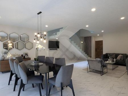 La casa tienen diseño vanguardista con alta plusvalía.La casa Vanessa cuenta con: sala, comedor, cocina abierta, baño y closet de visitas, amplia alacena, cuarto se servicio, cuarto de lavado, jardín, 3 recámaras cada una con baño completo, la principal con vestidor, en el tercer piso esta el roof garden con baño. Garaje 3 autos con bodega, cisterna