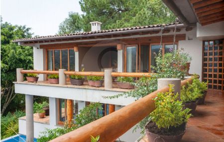Amplio terreno de 3000 m2 donde se localizan 5 cuartos, más 2 cuartos adicionales separados, 5 baños completos, 2 medios baños, alberca, jacuzzi, amplia terraza techada y precioso jardín.