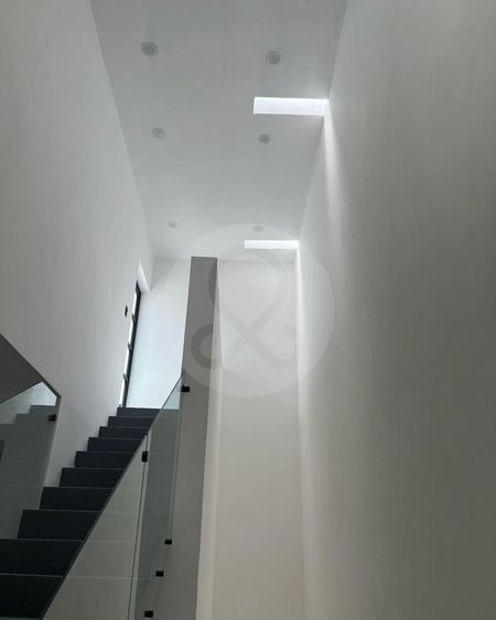 ACABADOS RECTIFICADOS DE GRAN FORMATO EN PISOS Y MUROS DE BAÑOS, ACCESORIOS DE PRIMERA, CRISTALES TEMPLADOS ESCALERAS CRISTALES TEMPLADOS EN BAÑOS ILUMINACION LED. CARPINTERIA GENERAL ENCHAPADA DE ENCINO, AREA DE TRIPLE ALTURA, 3 NIVELES, P.B. MEDIO BAÑO, SALA, COMEDOR, COCINA, JARDIN, PATIO DE SERVICIO TECHADO Y ESTACIONAMIENTO PARA 2 AUTOS, P.A. RECAMARA PRINCIPAL CON CLOSET VESTIDOR Y BAÑO COMPLETO, 2 RECAMARAS SECUNDARIAS BAÑO COMPLETO Y 3ER NIVEL ROOFTOP.