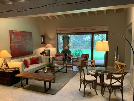 •Amplia sala con chimenea y acceso directo a terraza techada, también con chimenea, perfecta para reuniones al aire libre.