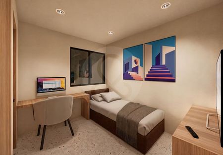Sur132 es un proyecto exclusivo de departamentos en preventa ubicado en Las Américas, Ciudad de México. Con una superficie de 94 m² distribuidos en 3 recamaras, 3 baños, sala comedor amplia, cocina abierta y diseño minimalista, este departamento ofrece espacios privados al aire libre que invitan a la tranquilidad y se convierten en un refugio sereno para proporcionar calma y bienestar en medio del ajetreo diario. Con entrega programada para enero de 2026, Sur132 brinda confort y privacidad en un equilibrio perfecto. Además, cuenta con bodega, cocina integral, closets, cuarto de TV, despensa, terraza, apto para mascotas, cisterna, estacionamiento techado, garaje, jardín privado y luz natural. La propiedad se encuentra en excelentes condiciones.