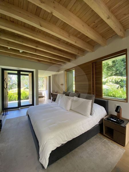 La piscina y el jacuzzi te invitan a sumergirte en momentos de relajación profunda mientras disfrutas de las vistas de los jardines exuberantes que rodean la casa. La integración con el entorno natural no solo está en los detalles de la casa, sino también en el diseño del condominio, que cuenta con un huerto orgánico vivo, lagos y cascadas, proporcionando una atmósfera de plenitud y renovación.