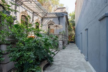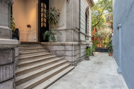 Casa Porfiriana del siglo xx, estilo ecléctico, Catalogada por el InBA, construida sobre terreno intermedio, con 2 escalinatas de acceso, una ubicada por el patio lateral y la otra en la entrada sobre la calle de Berlín, desarrollada en 2