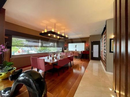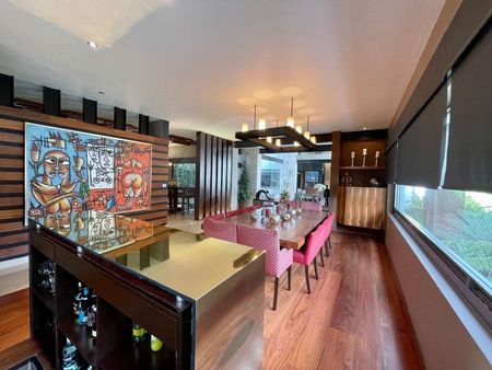 La casa está construida alrededor de un patio central por lo que es muy iluminada. Sus acabados en finas maderas, paredes de tela y mármoles importados, la hace una casa cálida, cómoda muy lujosa y acogedora.
