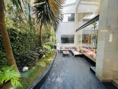Desde el jardín. Podemos ingresar al departamento- Loft independiente con elevador, baño completo, recamara con sala, cocineta, área de TV, roof garden, calefacción.
