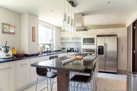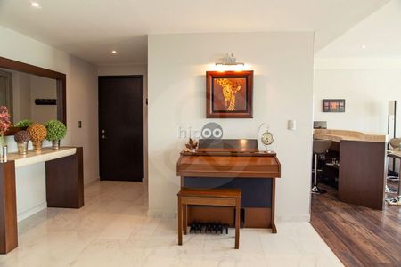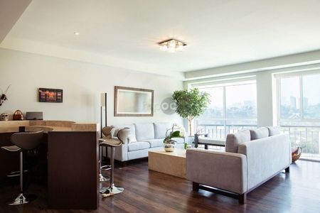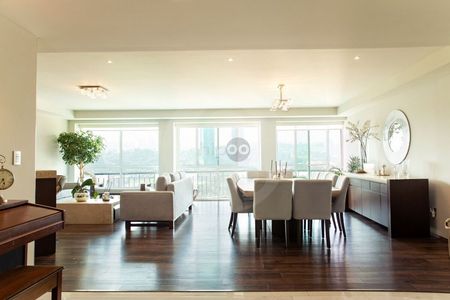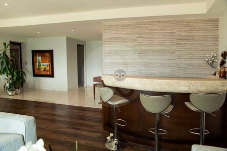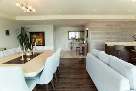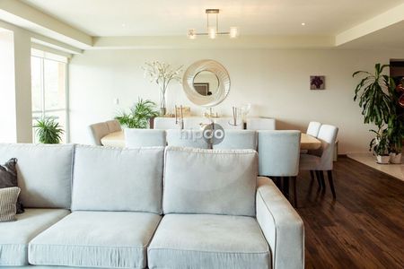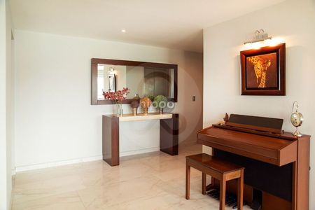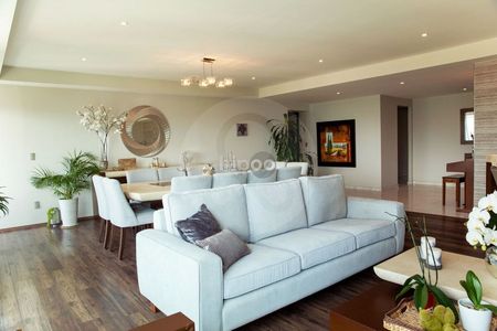 Impecable y cómodo departamento con elevador a la puerta y estupenda luz natural. Tres recámaras con baño y vestidor cada una; amplio family central con área de guardado y medio baño social que resguarda la privacidad de las habitaciones. Cocina bien iluminada y equipada con isla de trabajo y alacena. Cuarto de servicio con baño y área de lavado con gran espacio de almacenamiento.