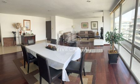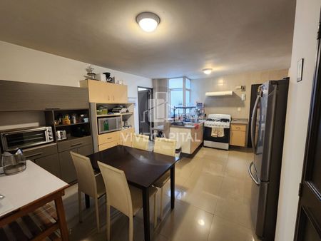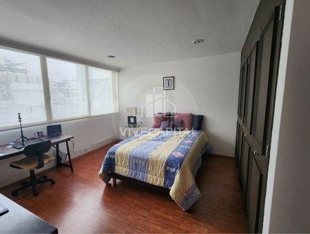 Amplio departamento con 3 recámaras (2 con clóset y baño compartido; 1 con vestidor y baño completo), 2 baños completos y un medio baño, 1 cajón de estacionamiento techado, estancia, balcón y excelente iluminación natural tanto en habitaciones como en sala y comedor.