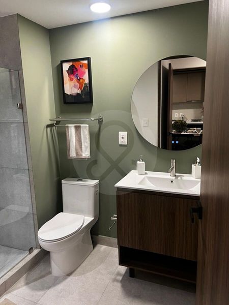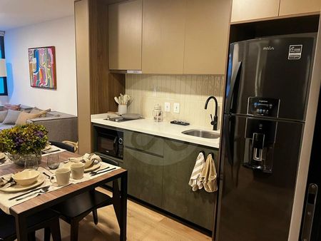 Se renta departamento a estrenar en la colonia San Rafael, delegación Cuauhtémoc, Ciudad de México. La propiedad cuenta con 1 recamara, 1 baño completo, cocina integral equipada con parrilla eléctrica, campana, persianas y cortinas, horno de microondas y refrigerador. Costo adicional de servicios de agua, luz y gas, estacionamiento opcional con valet parking, y servicio de lavadora y secadora con un costo extra. Entre las amenidades del edificio se encuentran un Work hub, Fitness Center, Social Lounge y Chef table. Próximamente se abrirán la alberca, cancha de paddle, área de parrillas, Pet Wash y Sky lounge. El departamento se encuentra en excelente estado y cuenta con seguridad 24 horas. Su ubicación en la calle James Sullivan ofrece un buen acceso a diferentes puntos de la ciudad. Con una superficie total de 38m2 y una recámara, esta propiedad es ideal para quienes buscan comodidad y modernidad en un espacio funcional y bien equipado.