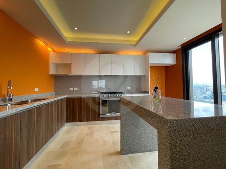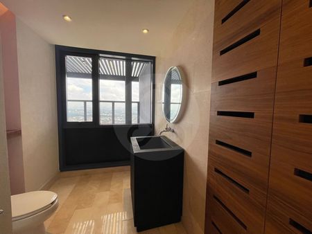 Los acabados son de Legorreta, carpintería e iluminación, películas para proteger del calor, amplia terraza y todos los espacios que se necesitan para vivir como se debe en las alturas.