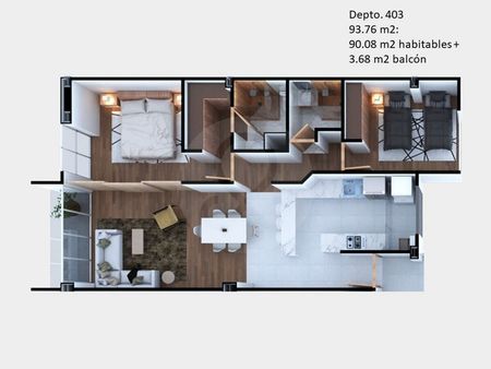 con 93.76 m2 (90.08 m2 habitables más 3.68 m2 de Balcón)