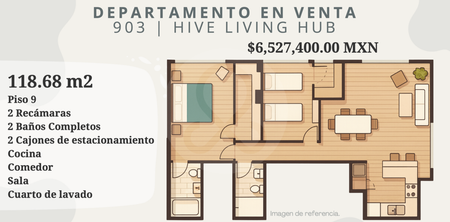 En venta una propiedad ubicada en el desarrollo HIVE Living HUB en la ciudad de Huixquilucan, en la colonia Bosques de las Palmas. Esta propiedad cuenta con 2 recámaras, 2 baños completos y 2 cajones de estacionamiento.