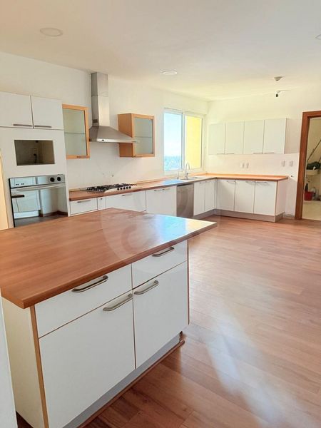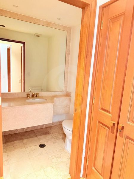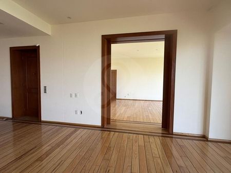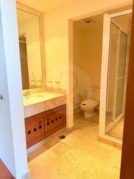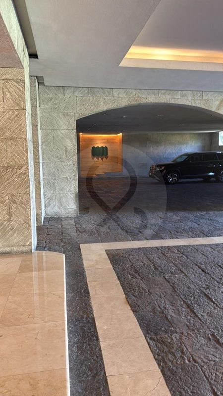 Este amplio departamento cuenta con 3 recámaras cada una con baño y vestidor, cuarto de tv mismos que están alfombrados, sala y comedor muy amplio, cocina con acceso directo al comedor y sala de Tv; la cocina tiene espacio para poner un antecomedor, cuenta con lavandería y cuarto de servicio, bodega muy grande y 5 lugares de estacionamiento. También es importante mencionar que tiene acceso privado mediante elevador principal con clave y entrada de servicio independiente.