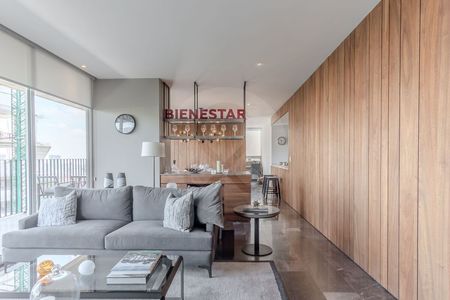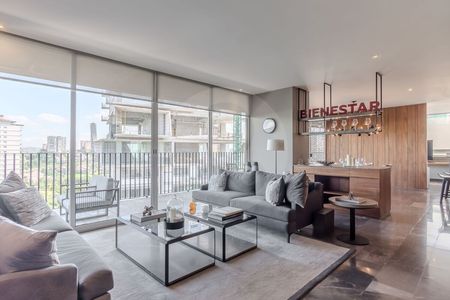 Cuenta con 3 habitaciones, 4 baños y 2 estacionamientos. Además, tiene una variedad de servicios y comodidades, como alberca, asador, business center, gimnasio, juegos infantiles, jardín, portón eléctrico y seguridad 24 horas. La propiedad está ubicada en el piso 22 de Showroom Bilú El precio de venta es de $12,200,000.