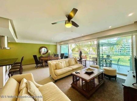 Se vende un hermoso departamento amueblado en Península Nuevo Vallarta, ubicado en el tercer piso del condominio. Cuenta con tres recamaras y tres baños completos. El complejo ofrece canchas de tenis, de baloncesto, gimnasio, spa, alberca y áreas verdes. Ubicado en una zona privilegiada de Nuevo Vallarta, con una amplia oferta de restaurantes en sus alrededores. El departamento tiene acceso a la playa, balcón con vista al agua, estacionamiento techado, aire acondicionado, cocina equipada, elevador y seguridad las 24 horas. Ideal para quienes buscan comodidad y tranquilidad en un entorno exclusivo.