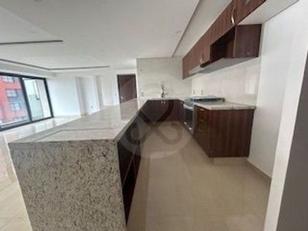La cocina, de tamaño generoso y con un diseño abierto, es ideal para aquellos que disfrutan de la cocina y de compartir momentos especiales preparando deliciosos platillos. Además, el departamento incluye un cuarto de lavado y cuarto de servicio para mayor comodidad.