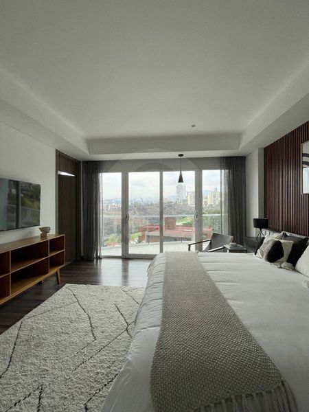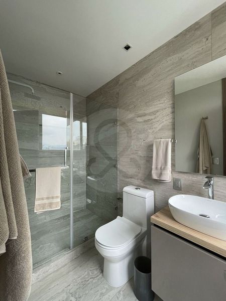 La propiedad cuenta con 3 recámaras, cada una con baño completo, walk in closet y terraza con espectacular vista, family, un medio baño, cuarto de servicio con baño, lavandería, bodega, 3 cajones de estacionamiento y vigilancia las 24 horas del día.