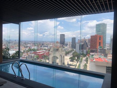 En un edificio moderno sobre Av. de los Insurgentes y a escasos metros de Paseo de la Reforma, con hermosas vistas a Cdmx y al monumento a la revolución, las amenidades que se encuentran en el piso 21 son inigualables, alberca, jacuzzi, salas co-work, bar y gimnasio