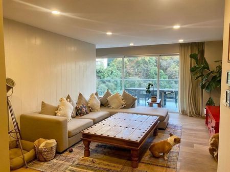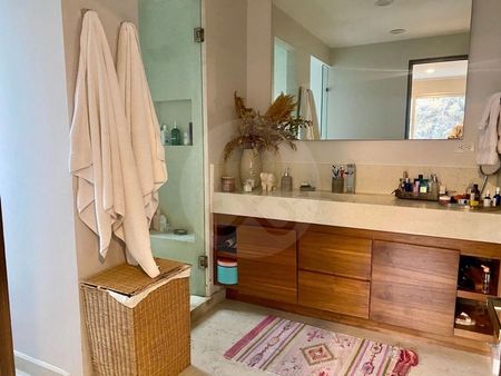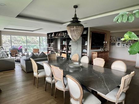 La cocina integral es de alta calidad y se integra de manera armoniosa con la sala y el comedor. Además, cuenta con una terraza de 46m2 con vistas a la cañada, ideal para disfrutar de momentos de relajación. El departamento también incluye cuarto de servicio, área de lavado, bodega y 3 estacionamientos techados. El edificio ofrece una amplia gama de servicios y amenidades, como gimnasio, jardín, elevador, seguridad 24 horas, acceso para personas con discapacidad y mascotas, entre otros. Ubicado en un fraccionamiento privado con fácil acceso y cercano a escuelas, este departamento es una excelente opción para quienes buscan comodidad, seguridad y calidad de vida en Huixquilucan, Estado de México.
