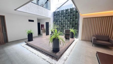 Departamento en venta en la exclusiva zona de Monraz en Guadalajara, Jalisco. Este hermoso departamento cuenta con 2 recamaras y 2 baños completos, además de un toilette. Con una superficie total de 116 m², esta propiedad ofrece una cocina integral con barra desayunadora, sala, comedor, cuarto de lavado y terraza. La recamara principal cuenta con baño completo y walk-in closet, mientras que la recamara secundaria tiene su propio baño completo y closet. El edificio cuenta con elevador panorámico, 3 sótanos, roof garden y una orientación al norte. Con un diseño moderno y funcional, este departamento es ideal para quienes buscan comodidad y estilo en una de las mejores ubicaciones de la ciudad. ¡No pierdas la oportunidad de adquirir esta propiedad única en Monraz!
