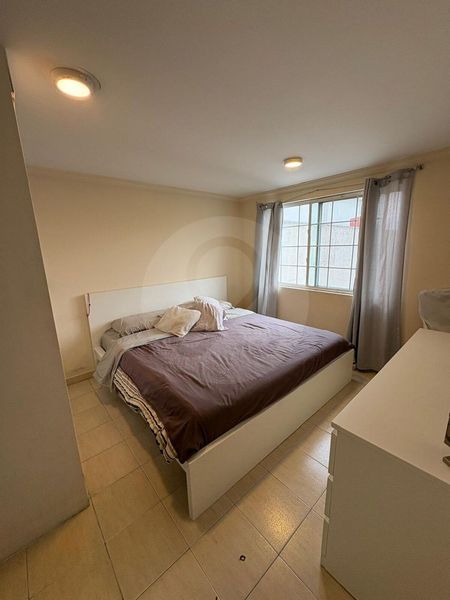 Se vende departamento en Parque San Andrés, Coyoacán, Ciudad de México. Con una superficie total de 84 m2, este inmueble cuenta con sala comedor, cocina integral, desayunador y área de lavado. Dispone de 2 recamaras con opción a tercera, principal con vestidor, y 2 baños completos. Además, cuenta con un roof garden privado de 65 m2 con baño completo y jacuzzi, cuarto de servicio amplio con baño compartido, área de lavado en azotea, 3 cajones de estacionamiento techados, armario junto a estacionamiento y bodega de 12 m2. Equipado con gas natural, cisterna, 4 tinacos, sistema de circuito cerrado de TV, jardín, gimnasio y baño completo común en PB. El mantenimiento es de $1,000. Excelente ubicación cerca de centro comercial, bancos, escuelas y farmacias, con fácil acceso a medios de transporte y vías de comunicación. No cuenta con elevador.
