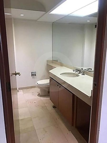 Distribuido en una sola planta, el departamento incluye una amplia sala-comedor, un estudio u oficina, un antecomedor, una cocina equipada, cuarto de lavandería y cuarto de servicio con baño.