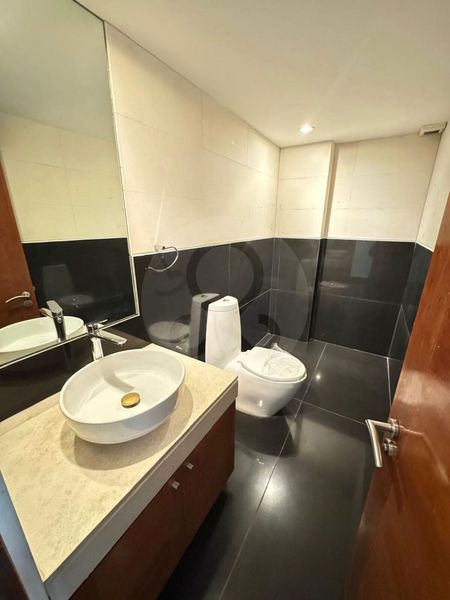 La recámara principal incluye un baño completo y un amplio walk-in closet. La segunda recámara también cuenta con baño propio y closet, mientras que la tercera habitación puede adaptarse como recámara o estudio según tus necesidades. El departamento se complementa con área de lavandería, cuarto de servicio con baño completo, tres lugares de estacionamiento y una bodega.