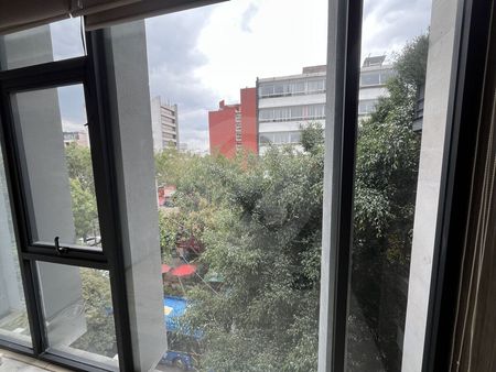 Hermoso departamento en edificio de solo 5 departamentos, uno por piso con elevador directo. Muy iluminado y ubicado a 500 metros de la Torre Bancomer, cerca del parque España en la Roma Norte. Cuenta con seguridad las 24 horas. La propiedad consta de 2 recámaras, 2 baños completos, cuarto de lavado, cuarto de despensa, 2 lugares de estacionamiento y bodega. La superficie total de 120m2 está distribuida de manera eficiente y funcional. Año de construcción 2017, en excelente estado de conservación y orientación hacia el oeste. Una oportunidad única en una ubicación privilegiada.